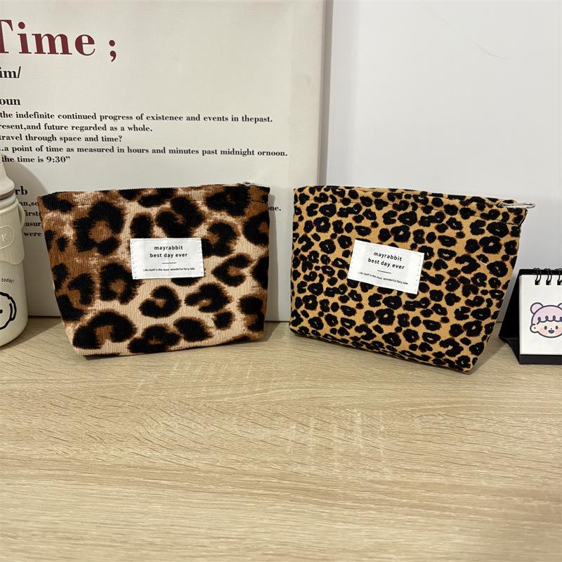 Koreański Sztruksowy Organizer na Kosmetyki ze Sznurkiem - Duża Pojemność