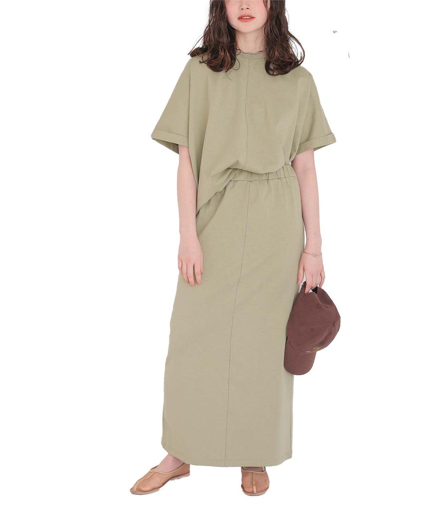 A relaxed set that combines comfort and versatility. Key Features: - Stress-free wear: Both the top and bottom are made of jersey material, providing a soft, comfortable fit and freedom of movement. - Each piece can be worn individually: A versatile item that can be worn as a set or as a top or skirt separately. - Understated design: The top has turn-back cuffs, creating a simple yet sophisticated look. - Elastic waist for easy on and off: The skirt has an all-elastic waist, making it easy to put on and take off. Coordination - Easy one-two outfits with the set: Easy styling that's quick and easy to put on, even on busy mornings. - Increased versatility when worn individually: Pair the top with jeans for a casual look, or the skirt with a blouse for a more elegant look. - Change the look with accessories: Add a casual touch with sneakers, or add a feminine touch with pumps. This set is perfect for both work and play, without compromising on comfort or style.