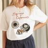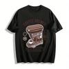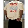 Kawa i rogaliki Amerykański styl retro sportowy czysta bawełna nadruk okrągły dekolt krótki rękaw T-shirt męski