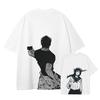 Japońskie anime 100% Bawełna T-shirt Anime J-Jujutsu K-Kaisen T-shirt z efektem vintage Luźny T-shirt z krótkim rękawem plus size