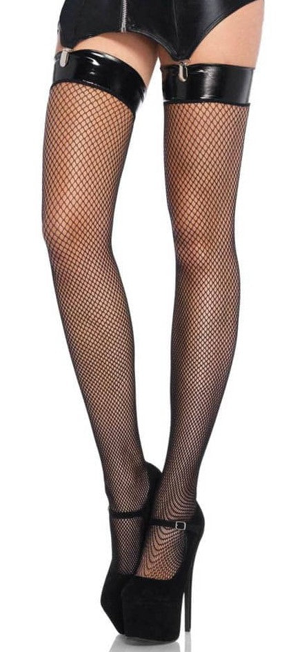 Bas résille avec jarretières wetlook - Noirs - Leg Avenue - Bas et Collants