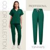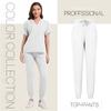 Ten damski elastyczny zestaw scrubowy został zaprojektowany z myślą o komforcie i wszechstronności zarówno w salonach kosmetycznych, jak i na salach operacyjnych.. Wykonany z wysokiej jakości tkaniny poliestrowej, zapewnia trwałość i swobodę ruchów przez cały dzień pracy.. Krótki rękaw zapewnia oddychalność i elastyczność, utrzymując chłód i komfort.. Idealny dla profesjonalistów poszukujących niezawodnego i stylowego uniformu, ten zestaw łączy praktyczność z eleganckim, nowoczesnym wyglądem.