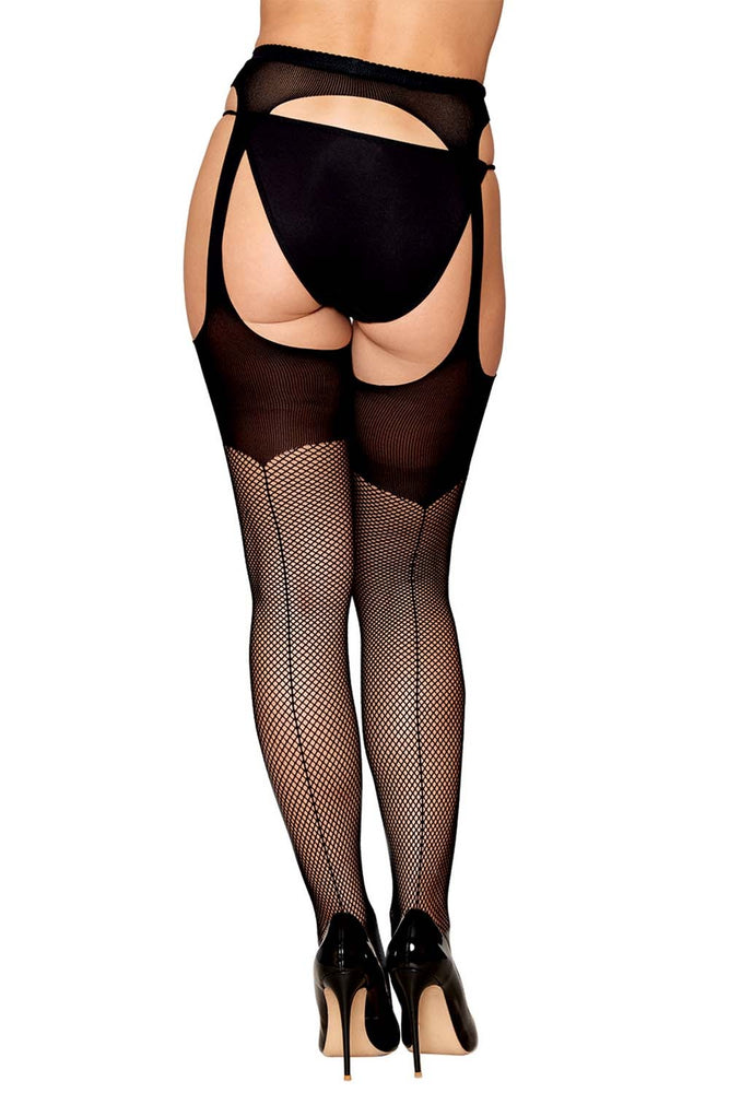Collant Porte Jarretelles En Fine Résille Noire Opaque Dg0501 Blk