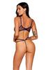 Bustier Dentelle Florale Et Résille Avec Strass Et String Assorti Dg13492 Blu