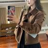 Jesień Zima Vintage Wykładany Kołnierz Zamszowa Tkanina Blezery Kobiety Luźny Casual Jednolity Kolor Pasujący do Wszystkiego Top Garniturowy