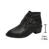 Fashion 2025 New Retro Pointed Toe Leather Thick Heels Women Chelsea Boots Black Brown Modern Shoes Rivet Belt Buckle Ankle Boot