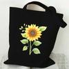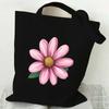 Black Canvas Tote Bag With Chamomile Flower Stylish Casual Shoulder Handbag For Shopping, Daily Use & Gifts, Shopping Handbag