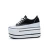 Modne 10cm Naturalna Krowia Skóra Szycie Prawdziwa Skóra Platforma Koturn Sneakersy Grube Wygodne Jesień Wiosna Damskie Wulkanizowane Damskie Buty