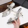 Modne koreańskie szpilki z seksownym szpicem 2025 Nowe francuskie cyrkonie z jednym paskiem sandały damskie