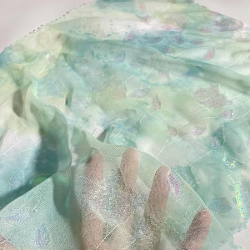 Szyfonowa tkanina z nadrukiem róż, retro damska sukienka, koszula, szycie DIY, kolorowa tkanina żakardowa, tkaniny na sukienki lolita do szycia, tiul