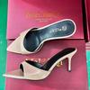 Black high heels, pointed toes, stiletto, one-word belt, and versatile temperament cool slippers.