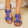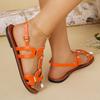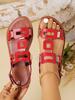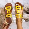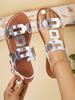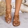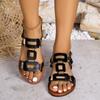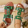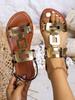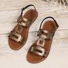Moda 2025 Skórzane Damskie Sandały z Okrągłym Noskiem Płaskie Casualowe Buty na Plażę Wygodne Obuwie Metalowa Dekoracja dla Kobiet Moda Rozmiar 43