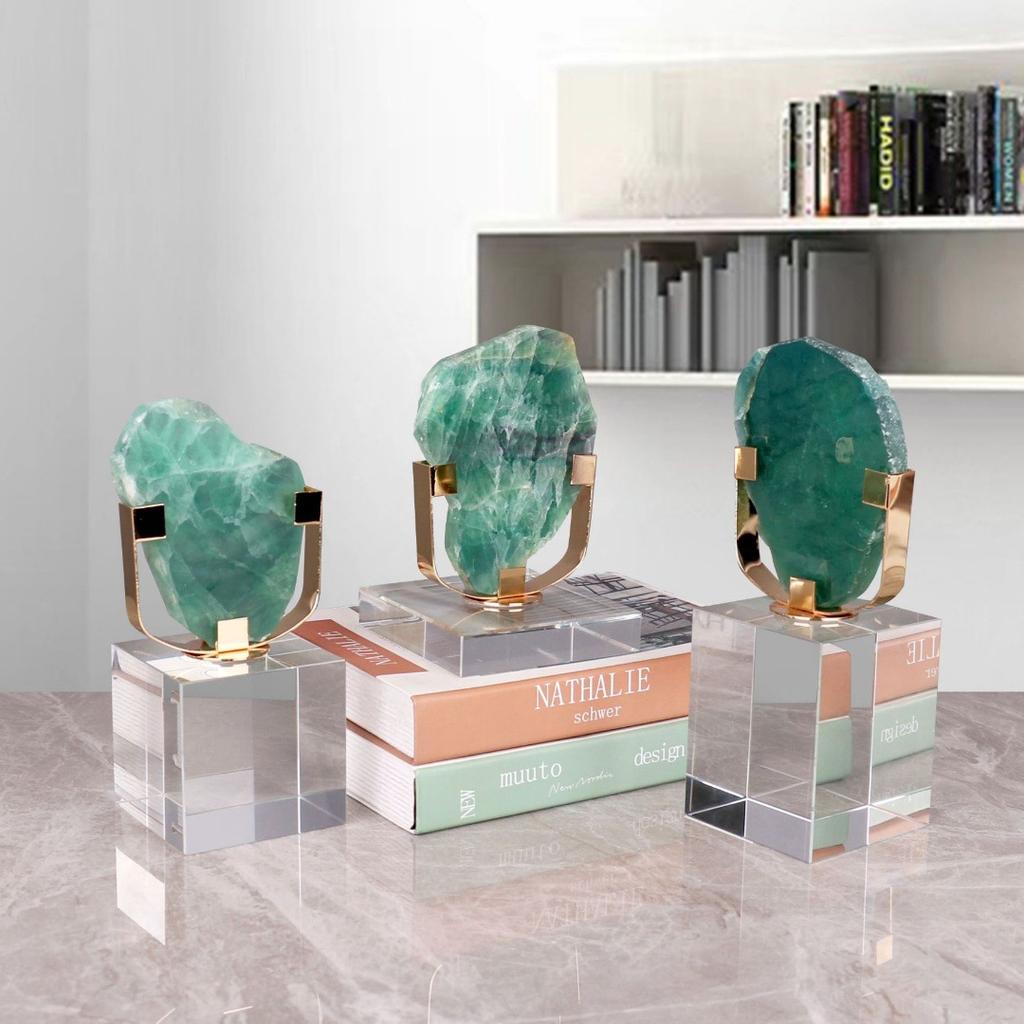 Natural Green Fluorite Crafts Sculpture Crystal Base Ornaments Desk Decoration Modern Crystal Artwork Room Aesthetics Decor