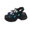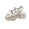 Modne Damskie Letnie Sandały na Platformie Błyszczące Oddychające Koturny 9CM Obcasy Damskie Kryształowe Klapki Plażowe Grube Buty Sandalias Mujer