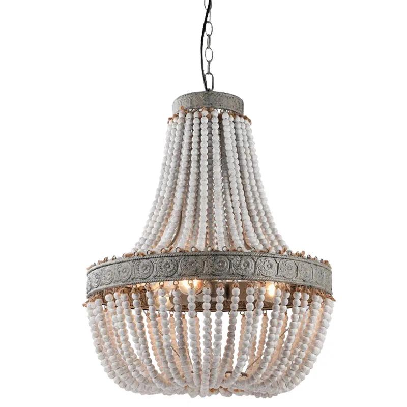 French Antique White Wood Bead Chandeliers Vintage Grey Beaded Farmhouse Chandelier Lighting Bedroom Dining Room Retro Light