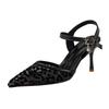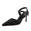 Fashion Lace Mesh Stiletto Sandals Women's Fashion Pointy, Shallow Mouth Breathable Metal One-button Non-slip Heels