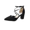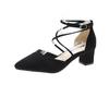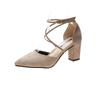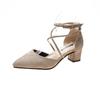 Fashion High Heels Women's Summer Block Heel Pointed Toe Shallow Cross Lace-up Roman One Buckle Strap Hollow Sandals