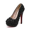 Moda 14cm Luksusowe Buty Ślubne Perłowe Kwiaty Pełne Cyrkonii Perłowa Platforma Wysokie Obcasy Buty Ślubne na Zamówienie Kopciuszek