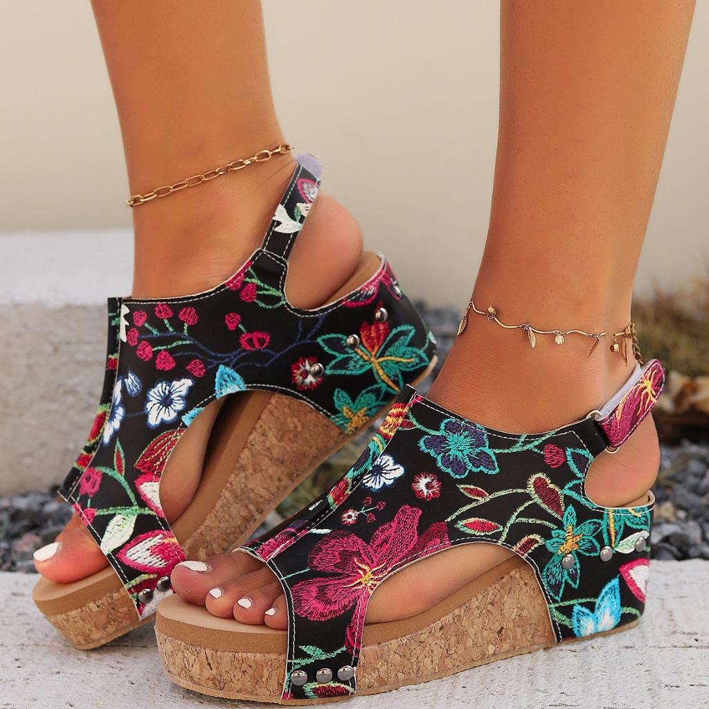 Fashion The 2025 summer new fashion height-increasing Chinese-style flower-themed large-sized casual sandals from Europe and America