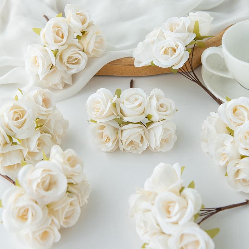 6 SZT Sztuczny Kwiat Jedwabna Mała Róża DIY Ślub Panna Młoda Kwiat do Trzymania Akcesoria Dekoracja Wazon Dom Sypialnia Wieniec Świąteczny