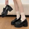 Moda Gothic Grube Wysokie Obcasy Czółenka dla Kobiet 2025 Wiosna Lakierowana Skóra Platforma Mokasyny Kobieta Czarne Na Grubym Obcasie Jk Lolita Buty