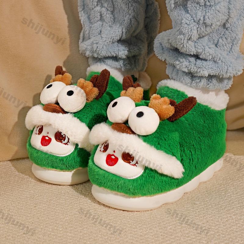 Modne Damskie Świąteczne Pluszowe Bawełniane Kapcie Zimowe Nowe Urocze Kreskówkowe Domowe Antypoślizgowe Kapcie z Miękką Podeszwą Ciepłe Puszyste Buty dla Par