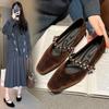 Modne damskie buty z kwadratowym noskiem i płytkim wycięciem, zamszowe, wiosenne, nowe, na grubym obcasie, pojedyncze, z kryształową klamrą, miękka podeszwa, antypoślizgowe buty Mary Jane