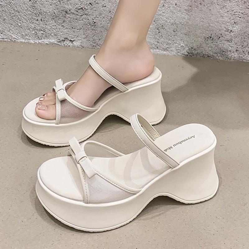 Fashion Women High Heels Slippers Platform Bow Designer Shoes Summer Woman Heeled Sandals New 2025 Fashion Slides Pumps Zapatillas Mujer