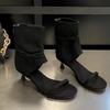 Fashion 2025 New Concise Open Toe Clip-On Denim Women's Boots Pleated Low Thin Heels Roman Booties Sandal Chaussures Femme Botines