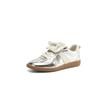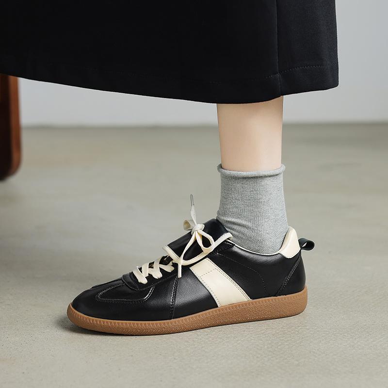 Fashion New Lace Up Sneakers Genuine Leather Splicing Flat Shoes Black Red Silver Ladies Casual Beading Flats Womens Round Toe Footwear