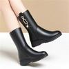 Women's medium boots autumn and winter new velvet cotton boots metal accessories black thick-soled wedge fashion boots