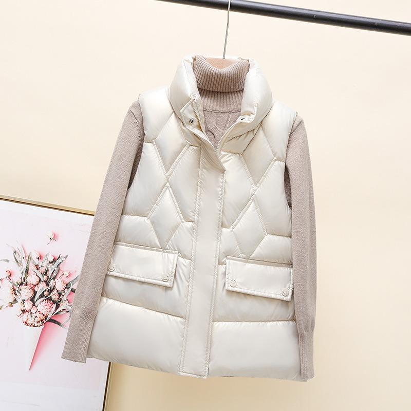 Ubrania bawełniane, kamizelka damska krótka jesień i zima nowa kamizelka bez rękawów, modny płaszcz ze stójką