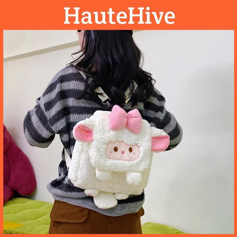 Soft Cute Lamb Plush Cartoon Backpack Curved Shoulder Straps Girls Students