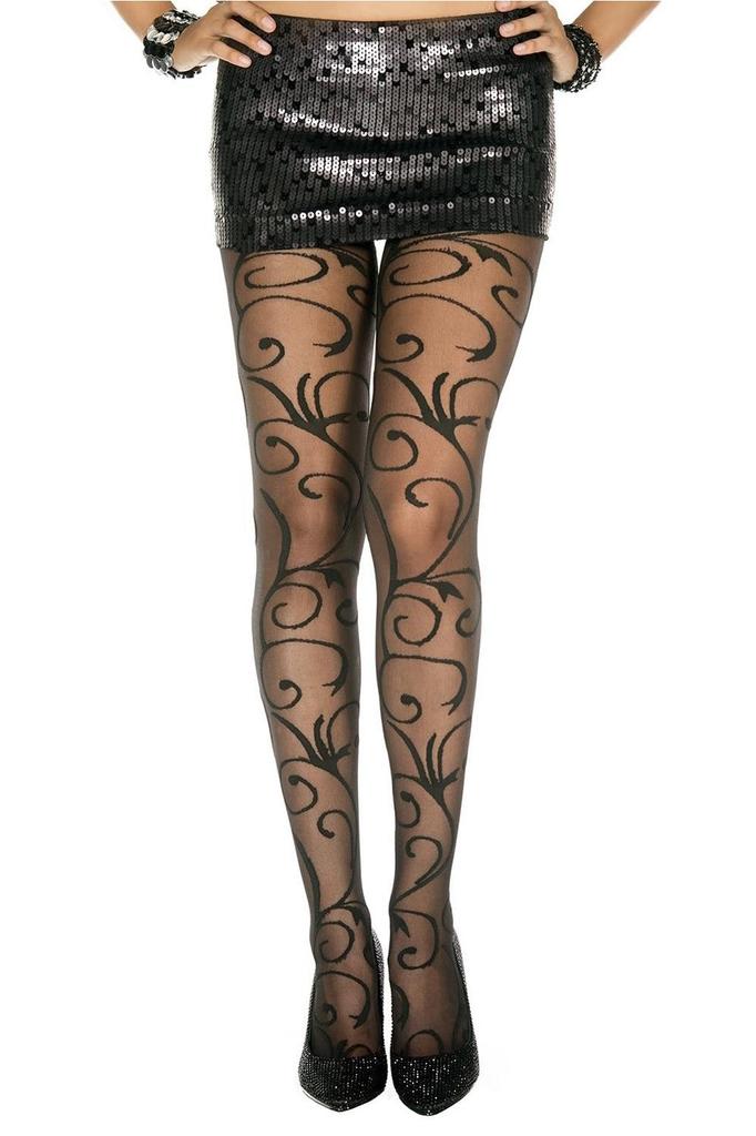 Collant Fantaisie Noir Nylon Avec Fioritures Mh7129 Blk