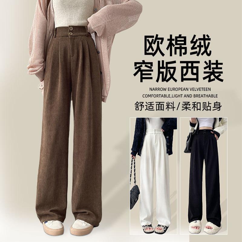 Winter velvet wide-leg pants women's new chenille casual pants small straight European cotton velvet suit pants