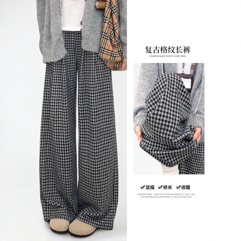 Lazy plaid pants women's new high-waisted thin, drape, loose, small casual loose wide-leg pants