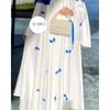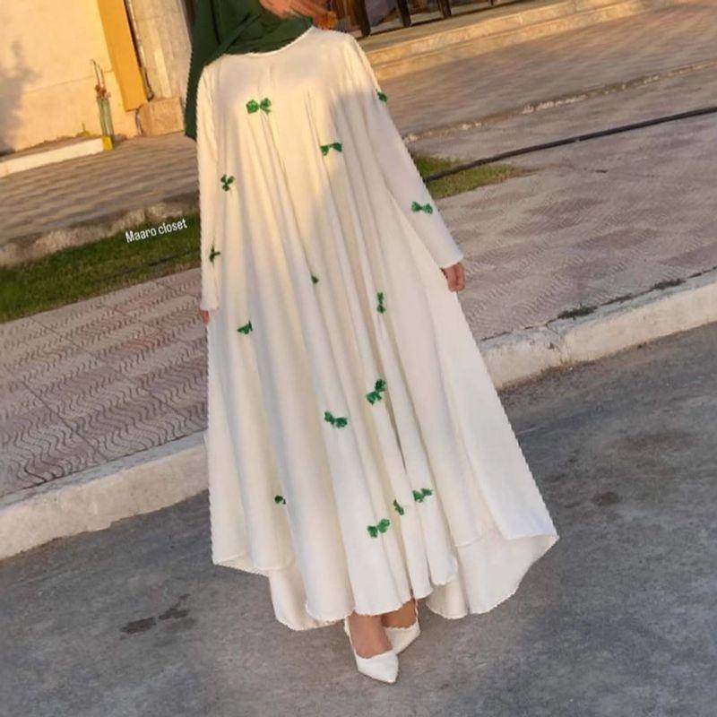 Middle East Dubai New Fashion Casual Loose Bow Embroidered Robe Long dress Belted Dress Robe