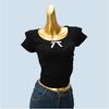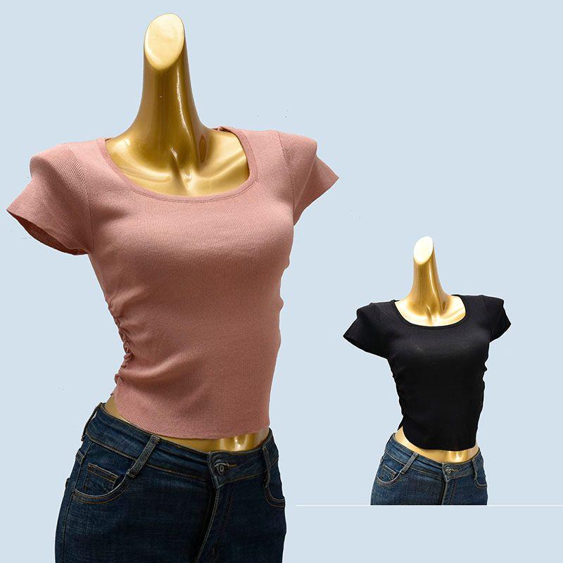 Knitted Simple Pleat Summer New Short sleeve knit Women Slim fit Slimming Square Collar Solid All-Match Base Top