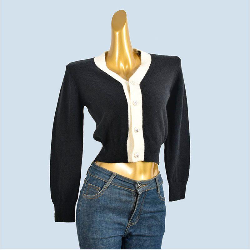 French style Retro Contrast Color V-neck Knit cardigan Women Spring and Autumn New Elegant Age-Reducing Slimming Versatile Sweater Outerwear