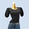 Perspective Texture Bubble Sleeve Pullover Tops Summer Short Sleeve Silm Stretch Knitting T-shirt