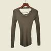 Foreign Trade Original Order Lace-up Slim fit High Elastic Knitted Bottoming Shirt Early Autumn Solid Curved Hem Backless Skin-friendly Pullover
