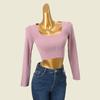 Foreign Trade Square Collar Slimming High Waist Pullover Long-Sleeved Sweater