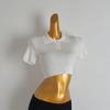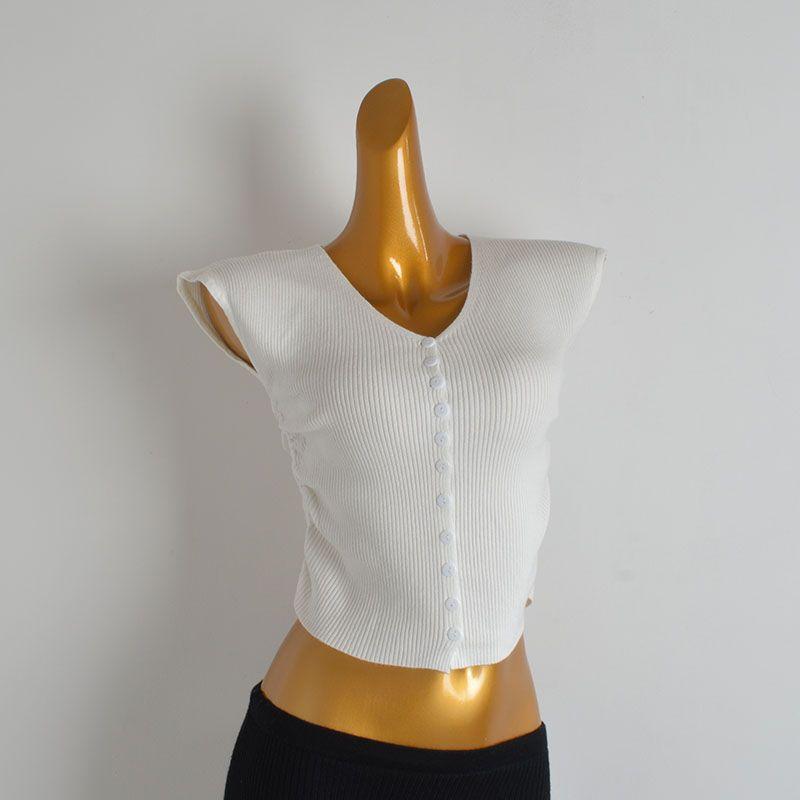 Pure Color New Arrival Minimalist V-neck Ruffled Sleeve Knitting Cardigan Women's Clothes Summer Silm Elastic Ruched T-shirt Tops Tide