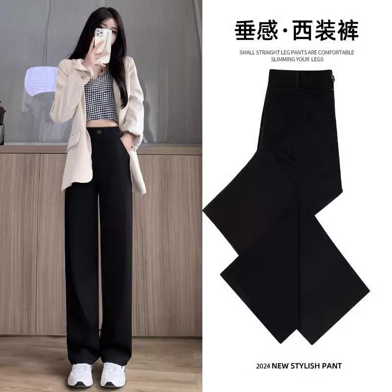Black suit pants women's pants spring autumn and winter new high-end drape straight tube small narrow wide-leg pants