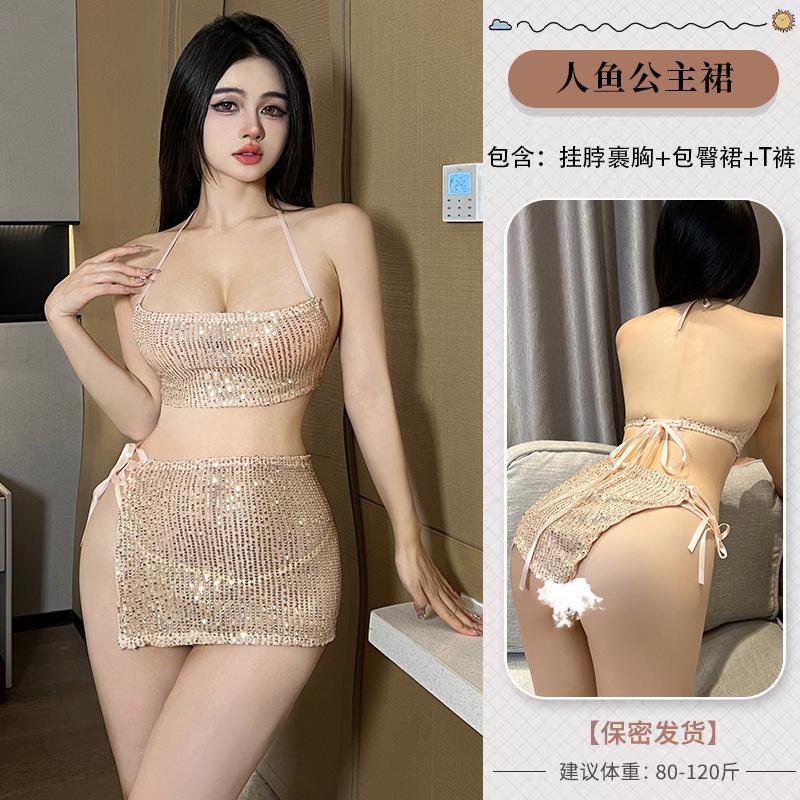 Sexy lingerie golden mermaid princess dress suspender sexy temptation breast free suit