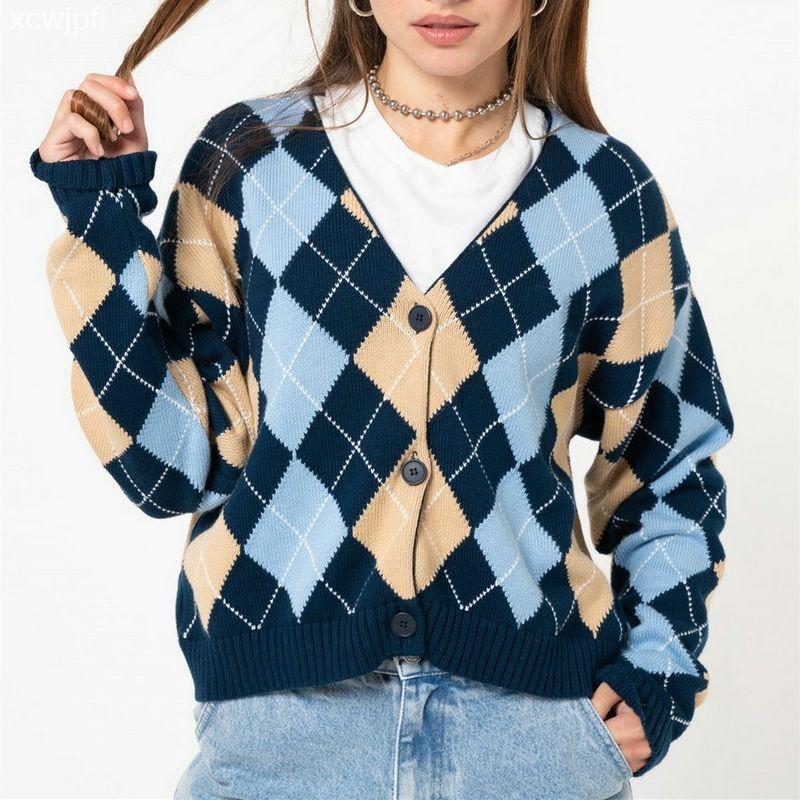CC Song Yan's Same Style Retro Diamond Stylish Idle Style Cardigan Long Sleeves Sweater Casual Outwear Female