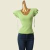 Mint Green V Neck Thread Fitted Knitwear Summer Flying Sleeves Slim Looking Pure Color Undershirt