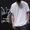 Men's Summer Ice Silk Mesh Short-Sleeve T-shirt: Super Thin, Breathable, Quick-Dry, Solid Color with Hollow Design.