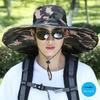 Męski kapelusz przeciwsłoneczny z szerokim rondem - Letni kapelusz słomkowy ochronny na zewnątrz do wędkowania i budowy.
