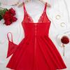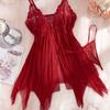 Transparent Thin Style G-string Lace Ruffle Trim Lingerie Set Women Nightgowns Sleeveless Sleepwear Sexy V-Neck Bra Panty Sets